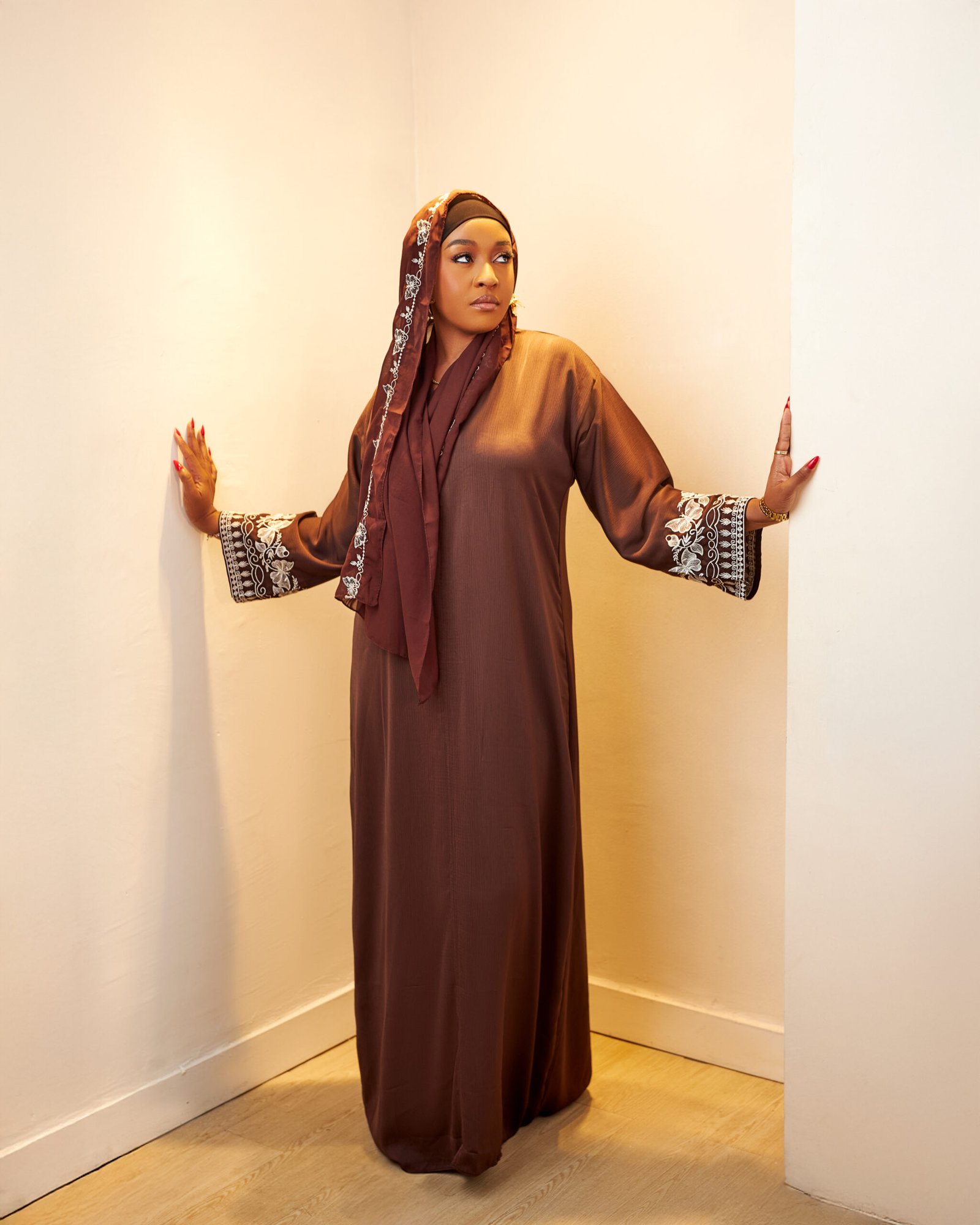 Envelop yourself in refined warmth with the Mocha Glow Abaya — a rich coffee-brown design that blends sophistication and comfort. With its subtle tones, this piece complements a variety of styles, offering a timeless elegance that transitions effortlessly from day to evening.
